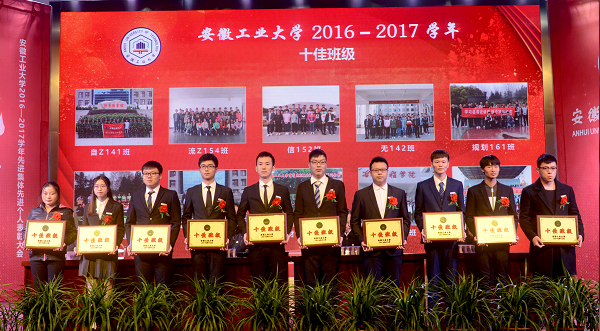在雄壮的国歌声中,表彰大会拉开帷幕。副校长祖明宣读了学校2016-2017学年本科生表彰决定。伴随着优秀学子风采展示,校党委书记刘新跃等校领导为获得暑期社会实践优秀团队、校“十佳班级”、校“三好学生标兵”、宝钢奖学金、校长奖学金、国家励志奖学金、国家奖学金、美国数学建模竞赛二三等奖、“挑战杯”国赛一二三等获奖团队以及2017年校辅导员职业能力大赛获奖辅导员老师等十大类奖项的先进集体、先进个人代表颁发奖牌、证书。